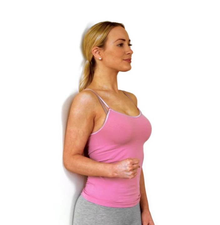Θέση: Σταθείτε πλάι σε έναν τοίχο, με τον ώμο που θέλετε να ασκήσετε να απομακρύνεται από τον τοίχο (δηλαδή, ο τοίχος να βρίσκεται στην εσωτερική πλευρά του χεριού σας).